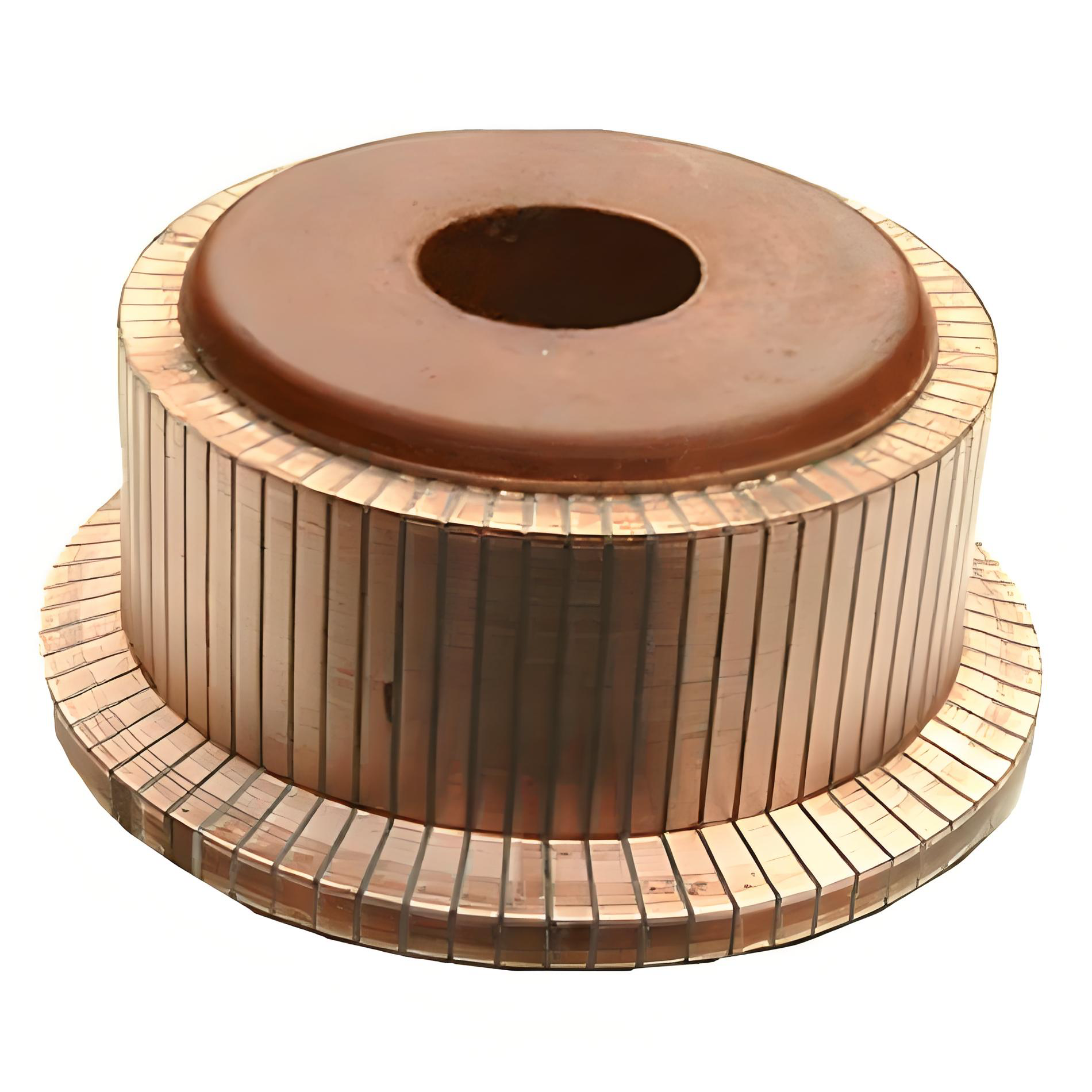 The commutator consists of multiple copper segments (commutator bars) arranged in a cylindrical or disc shape, insulated from each other with mica or other high-performance insulating materials. Each segment is connected to armature winding elements. As the armature rotates, the segments sequentially contact fixed carbon brushes.